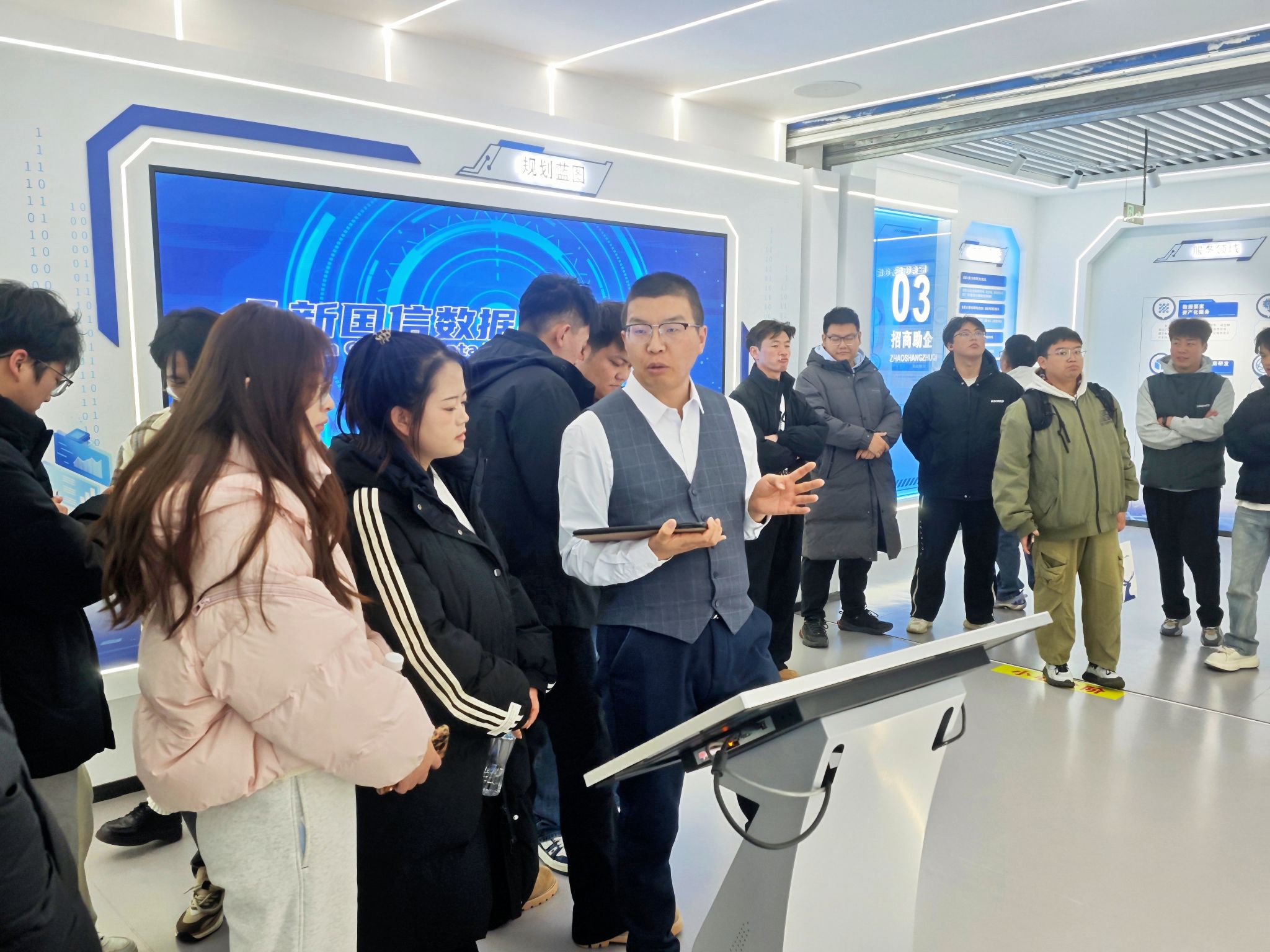 短暂休整就餐后,师生于13:50集合前往永新国信数据要素产业园。在园区工作人员带领下,学生深入了解数据要素产业发展现状、核心技术及未来趋势,近距离接触数据处理、存储与应用相关设备及场景,对人工智能技术与数据产业的深度融合形成直观认知,全程严格遵守园区管理规定,展现出良好的纪律素养与精神风貌。