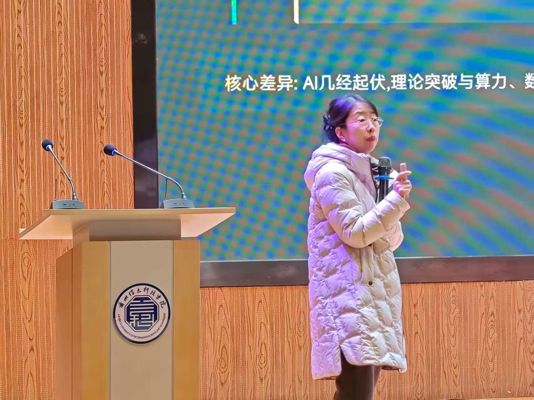 为深化大数据、人工智能与农业领域的跨学科融合,探寻数字技术赋能农业现代化的创新路径,2025年12月25日,计算机与人工智能学院大数据及人工智能系特邀甘肃农业大学信息科学技术学院三级教授、硕士研究生导师韩俊英,在2号学术报告厅作《大数据和人工智能在农业中的应用》专题讲座。学院师生代表齐聚现场,共赴这场学术交流盛宴。