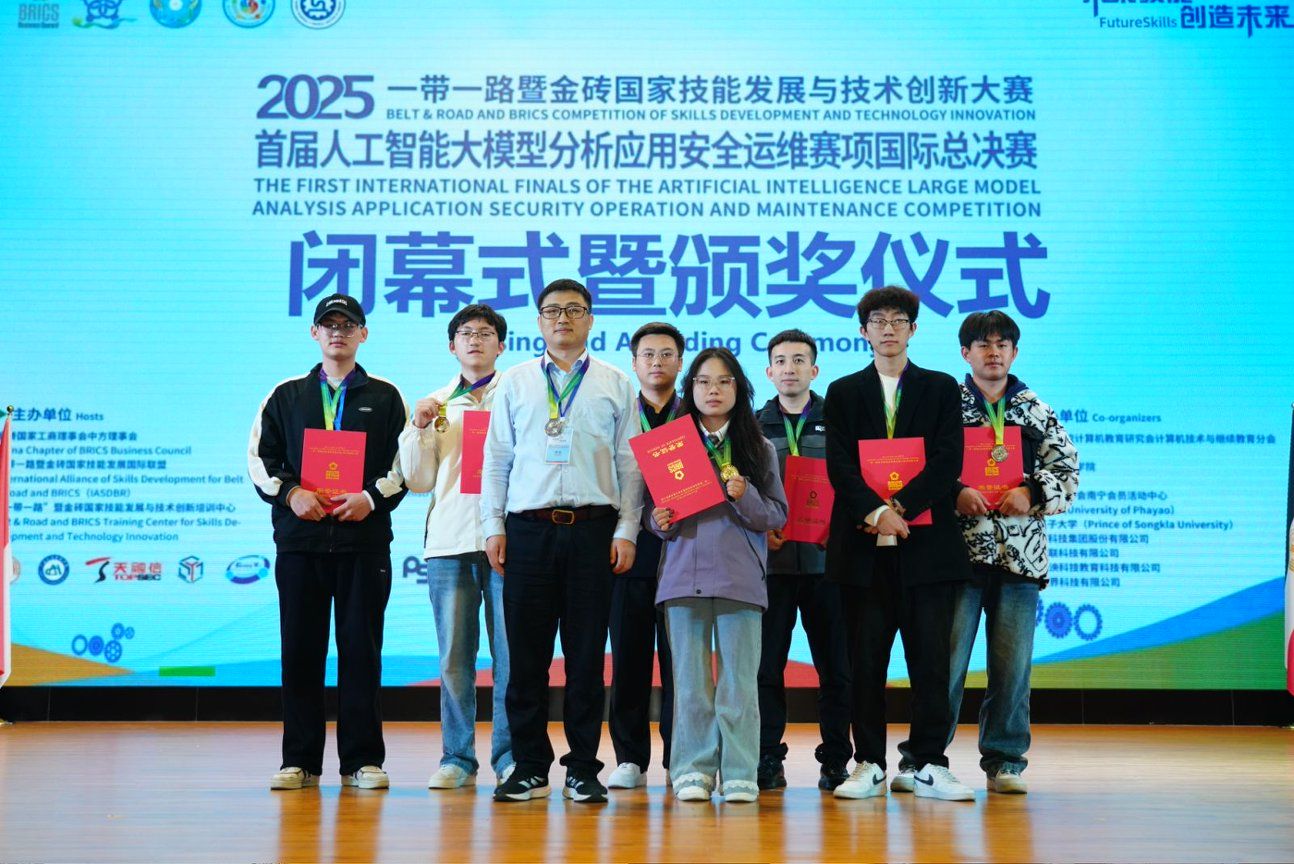为推动人工智能大模型技术在安全运维领域的深度应用,借助大模型强大的数据处理和模式识别能力,实现对安全事件的实时监测、风险预测和自动响应。12月28日,2025年“一带一路暨金砖国家技能发展与技术创新大赛——人工智能大模型分析应用安全运维赛项”国际总决赛在广西工业职业技术学院落幕。兰州信息科技学院计算机与人工智能学院荣获学生组国家级一等奖2项、职工组国家级二等奖1项、同时学校获评优秀组织奖和最佳组织奖,学校为甘肃省同类院校唯一获奖单位。