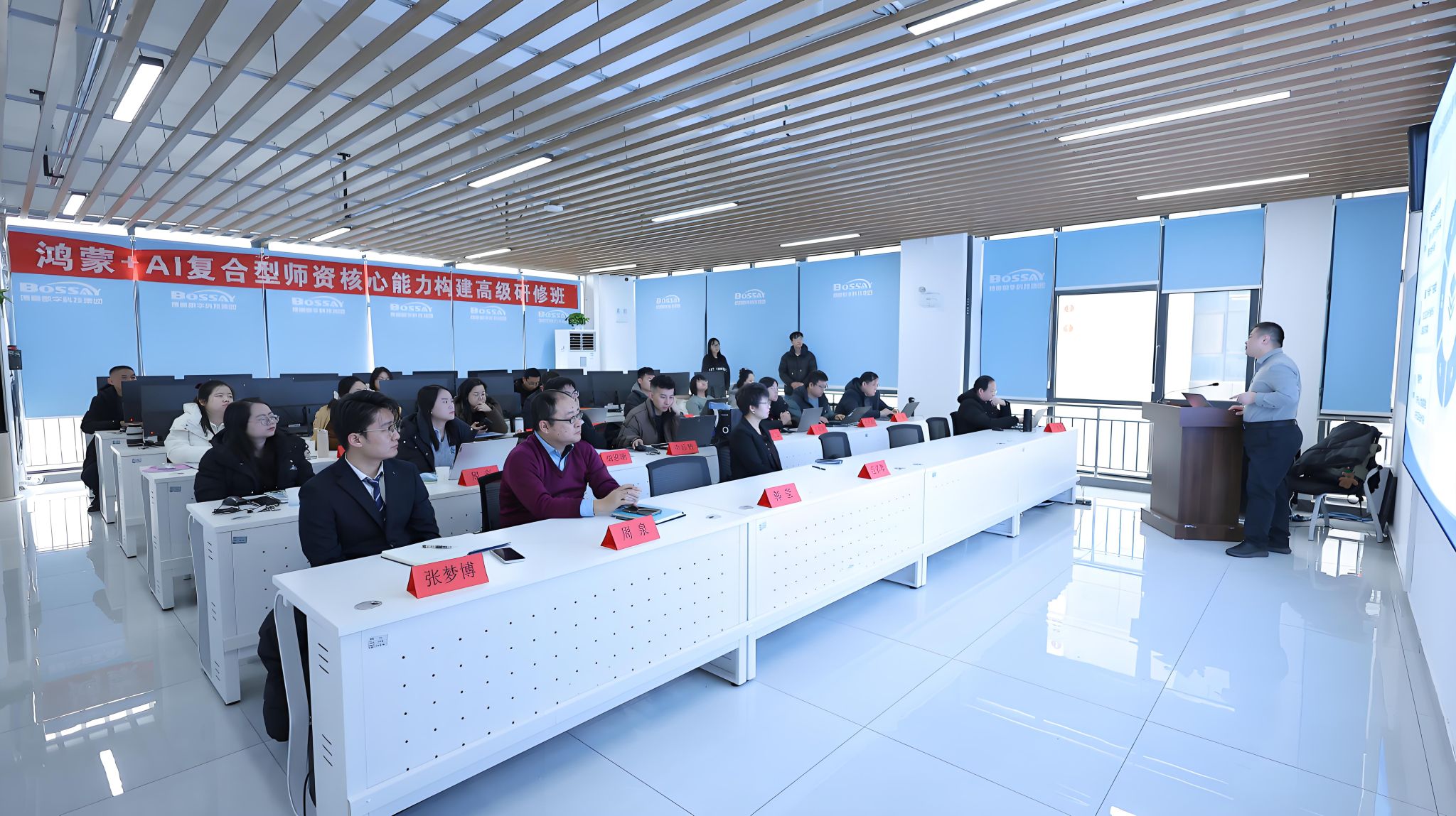 为落实学校“应用型+教学型”人才培养战略目标,全面提升教师专业实践能力与产业应用水平,着力打造一支师德高尚、理论功底扎实、实践能力突出的高素质专业化教师队伍,近日,计算机与人工智能学院积极响应学校号召,遴选8名骨干教师赴济南黄河数字人才公共实训基地,参加为期4天的“鸿蒙&星闪技术开发师资培训班”。本次培训由兰州艾科斯信息技术有限公司主办、博赛数字科技集团有限公司协办,以“理论+实操+互动”为核心模式,邀请企业资深工程师授课,聚焦鸿蒙系统开发、星闪技术应用等前沿领域。
