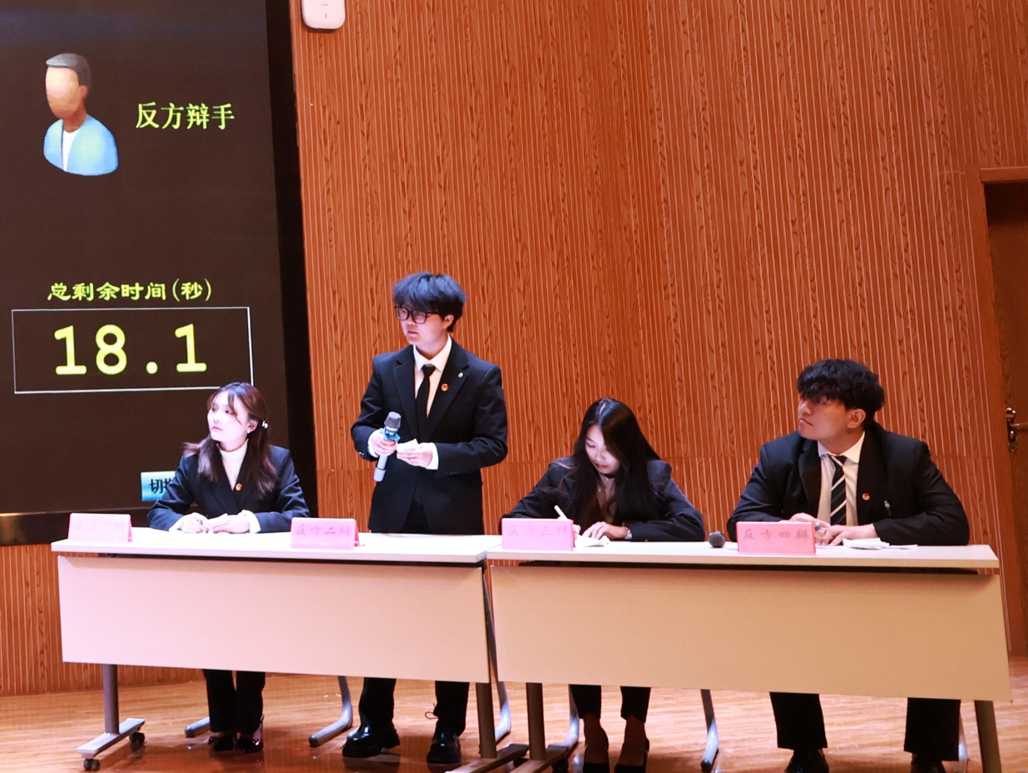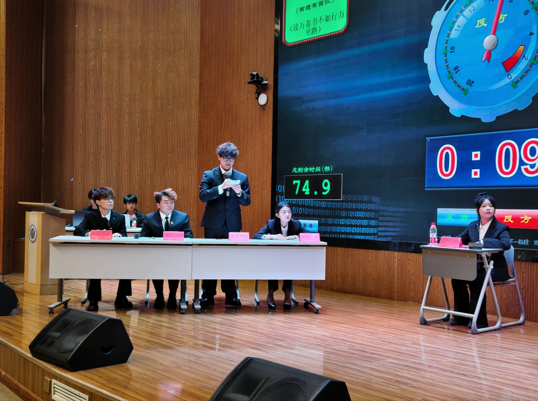 比赛伊始,全场肃立,齐唱国歌与团歌,在庄重热烈的氛围中拉开决赛帷幕。赛场上,正反双方辩手精神饱满、沉着应战:开篇立论逻辑严密、立意鲜明;攻辩环节反应迅捷、直击关键;自由辩论唇枪舌剑、妙语连珠,现场高潮迭起、掌声不断。辩手们以扎实的学识储备、清晰的逻辑表达与默契的团队配合,充分展现了青年学子的思辨素养与昂扬风貌。最终,比赛在双方铿锵有力、条理深刻的总结陈词中圆满收官。赛后,主评嘉宾对赛事与辩手表现进行专业点评,与会老师依次宣读优秀辩手、优秀领队及获奖班级名单,并为获奖集体与个人颁发荣誉与奖品。