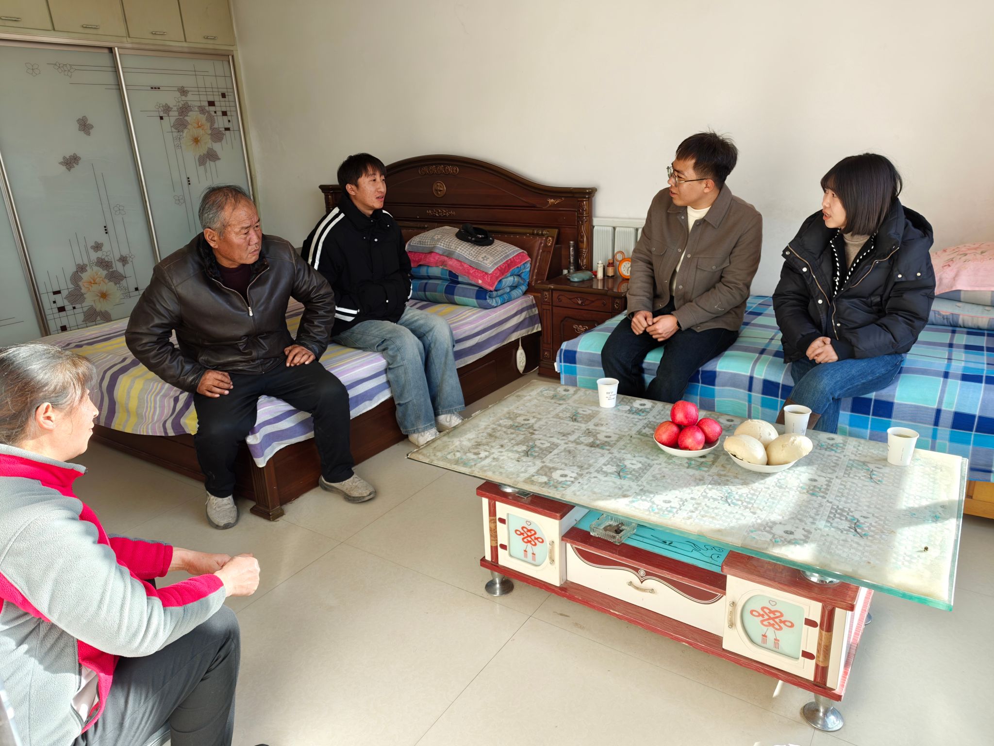 慰问小组一进门就关切询问学生父亲的康复进展、医疗负担等情况,辅导员韩子伟老师暖心安慰道:“孩子的学业与就业,学院老师会全力帮扶。我们将精准对接需求,为他铺路减负,绝不让家庭困境成为求职路上的阻碍。”质朴而坚定的话语,如同一缕暖阳,驱散了冬日的严寒,让学生及其家人倍感温暖与安心。